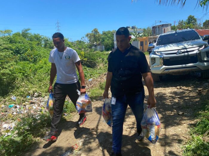 Durante la jornada, y en coordinación con comunitarios de la zona, se realizó la distribución de decenas de raciones alimenticias a personas de escasos recursos en sectores ubicados en las proximidades del río San Marcos. Estas acciones reflejan el esfuerzo conjunto entre autoridades y comunidad para llevar asistencia directa y oportuna a quienes más lo requieren.