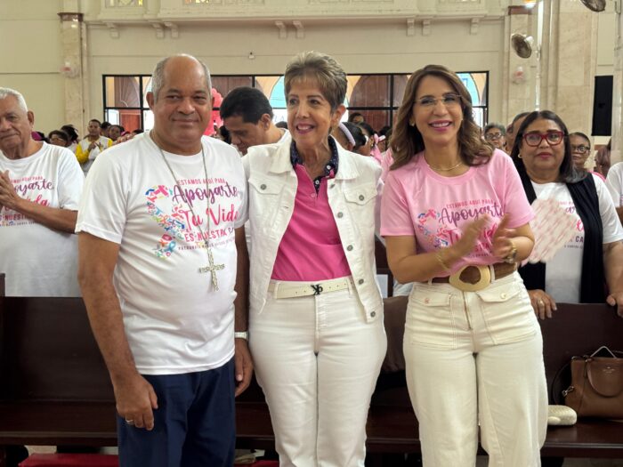Puerto Plata. – La representante del Poder Ejecutivo en la provincia de Puerto Plata, Claritza Rochtte, participó este sábado 25 de octubre en la solemne misa organizada por el Patronato Manos Unidas Contra el Cáncer, celebrada en la Catedral San Felipe Apóstol, como parte de las actividades de concienciación del Octubre Rosa 2025.